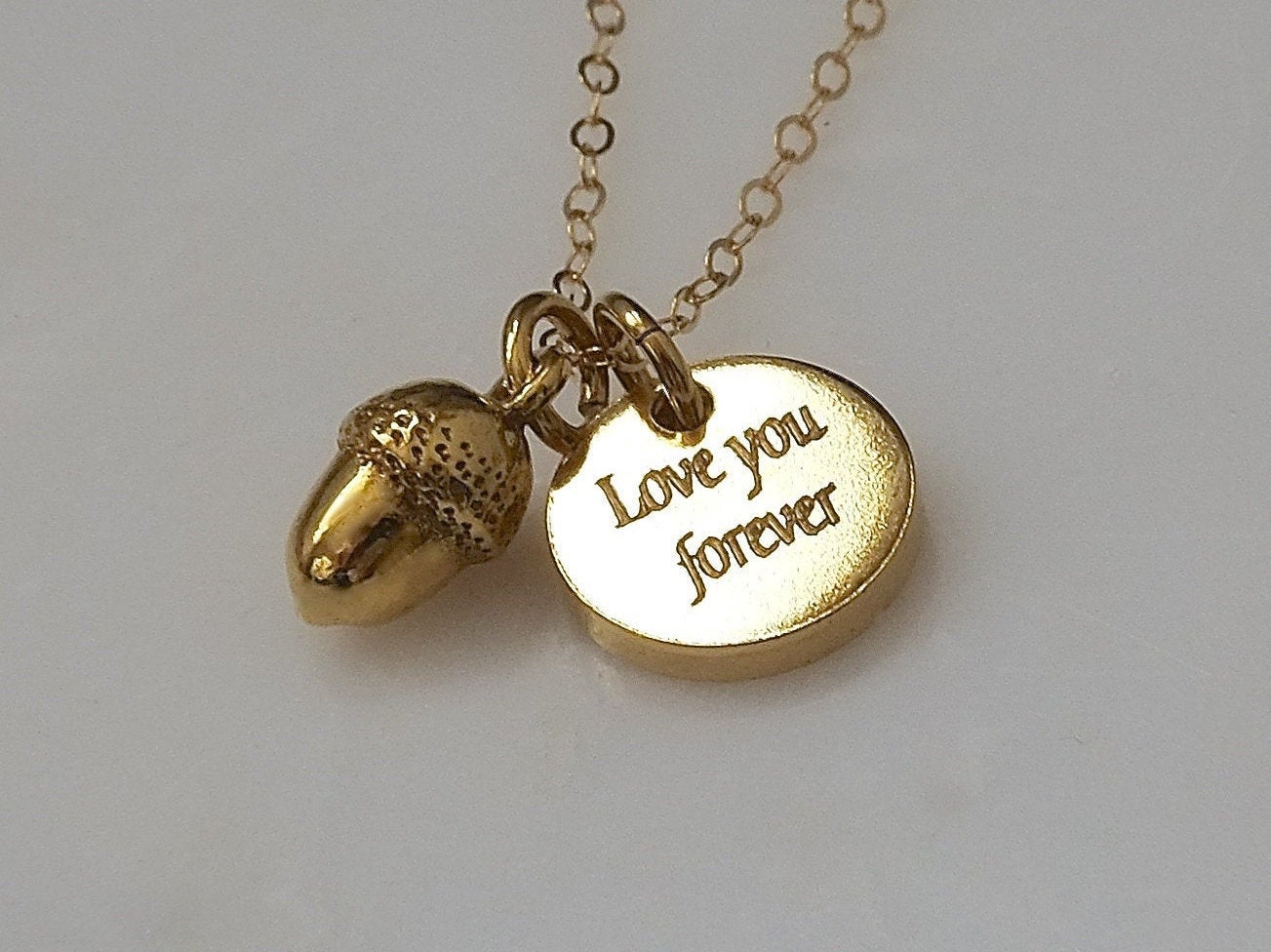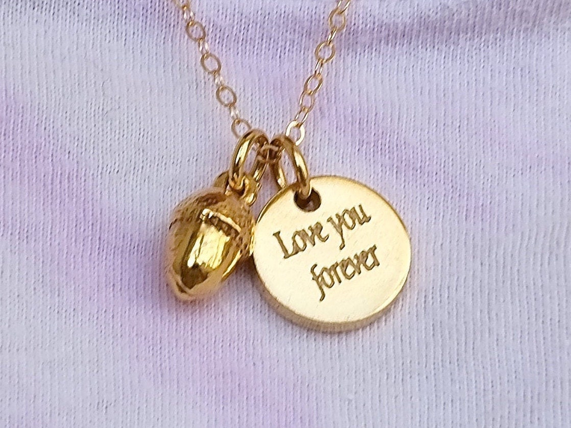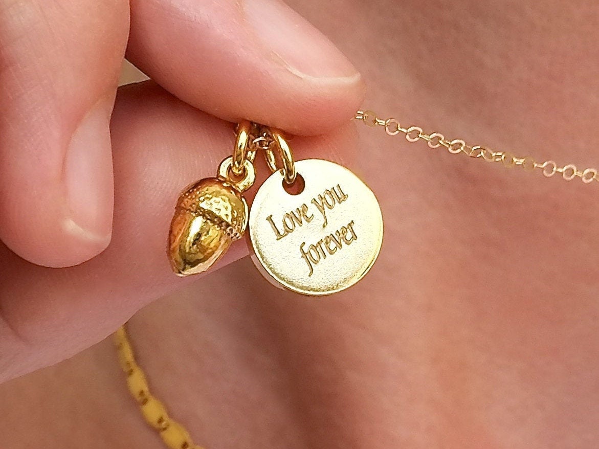 This beautiful handmade baby acorn charm necklace is available in solid sterling silver or 18 carat gold plated bronze.